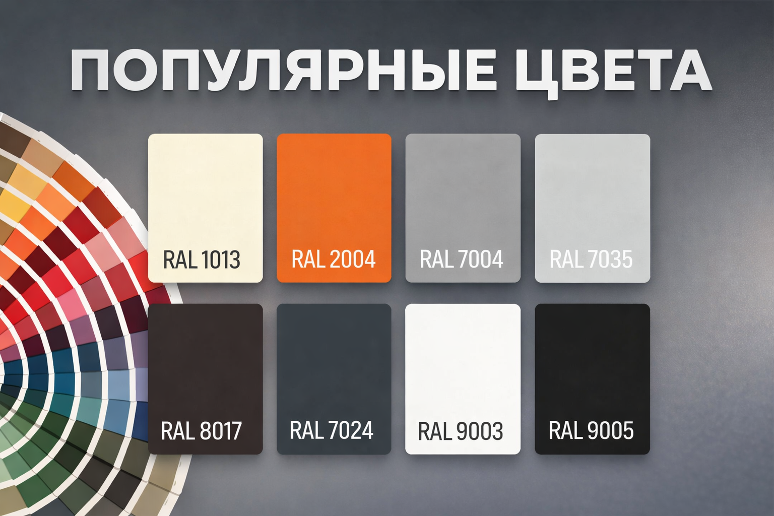 Подбираем оттенки по RAL и фактуры под интерьер или экстерьер.