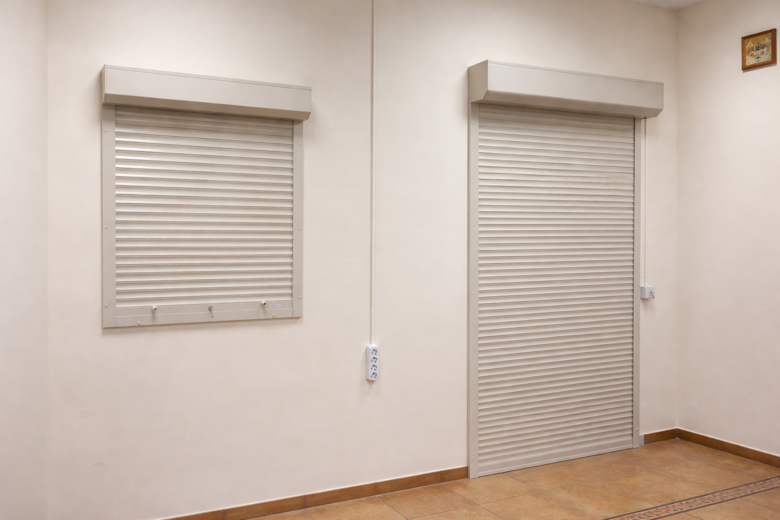 Рольставни защищают окна, двери, витрины и технические проемы от постороннего доступа, пыли, яркого солнца и уличного шума. Полотно поднимается вверх и компактно уходит в короб, поэтому система не занимает место перед проемом.