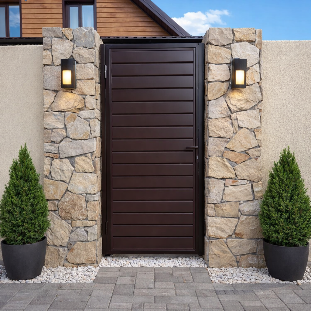 Конструкция устойчива к погодным условиям, не требует сложного ухода и подходит для длительной эксплуатации. Возможна установка в едином стиле с калиткой и воротами.